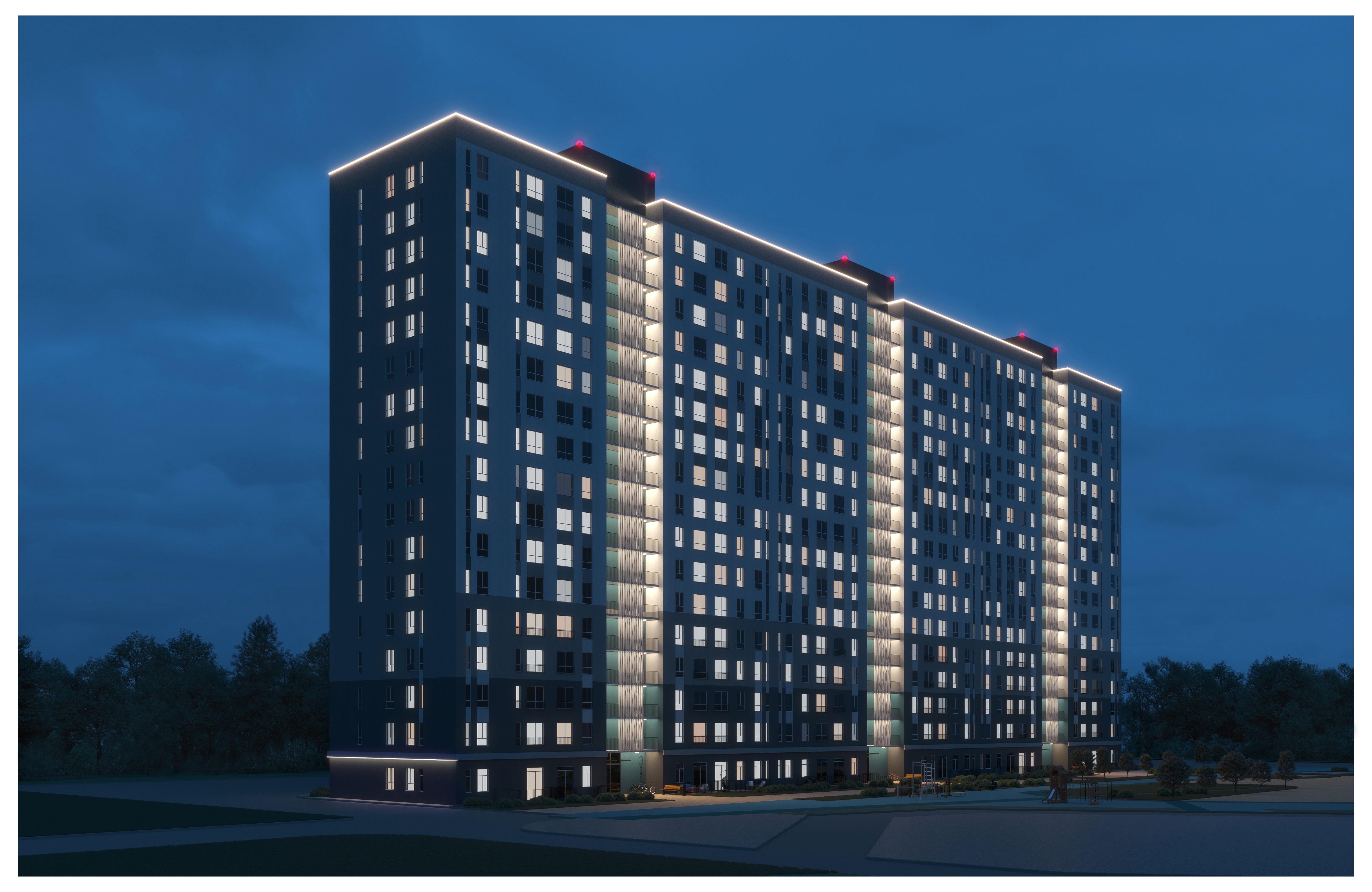 Архитектура комплекса дополнена безбарьерной средой с пандусами, а первые этажи отведены под коммерческие помещения, формирующие внутреннюю сеть магазинов, аптек и сервисов непосредственно в периметре микрорайона.